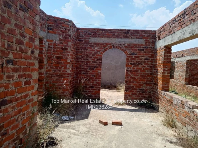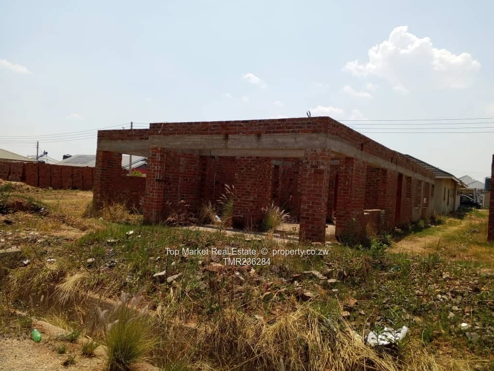 Incomplete house at roof level, 4 bedrooms, main bedroom with ensuite, lounge, kitchen, toilet & bathroom with shower, on 300sq.m, deeds available.